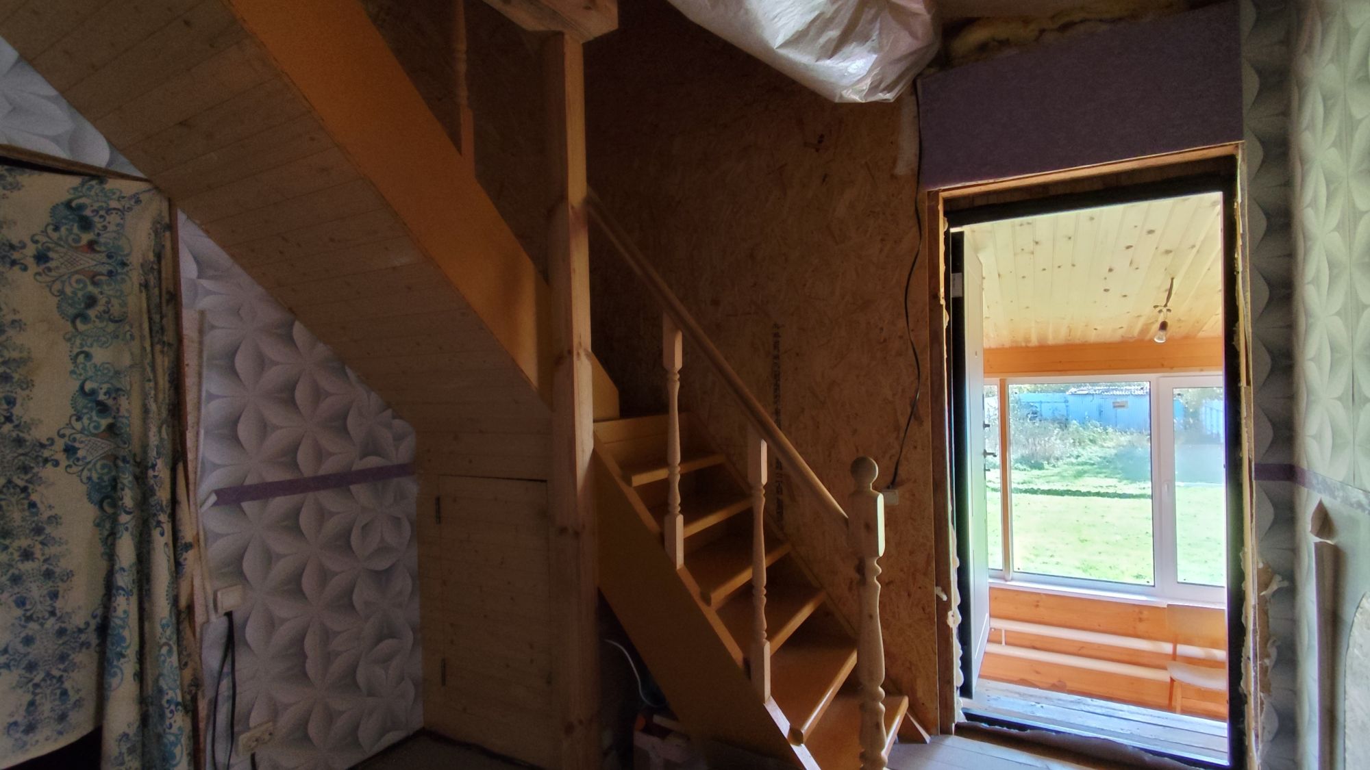 Дом стоит на качественном ленточном фундаменте, сделан из бруса, снаружи утеплен и обшит сайдингом, внутри утепление плиты OSB, крыша - ондулин. Под домом сухой погреб 64 кв.м. Первый этаж - теплая крытая терраса 21 кв.м - совмещена с прихожкой и котельной. Первый этаж 64 кв.м - холл, кухня 10 кв.м, совместный санузел, зал 22 кв.м, спальня 12 кв.м. При желании, можно сделать любую перепланировку. Второй этаж - 64 кв.м, запланированы две спальни, холл, санузел и гардеробная. Участок 1132 кв.м для индивидуального жилищного строительства, огорожен по периметру, граничит с одним соседом. На участке преимущественно газон, есть теплица, фруктовые деревья и ягодные кусты, два въезда для авто и калитка.