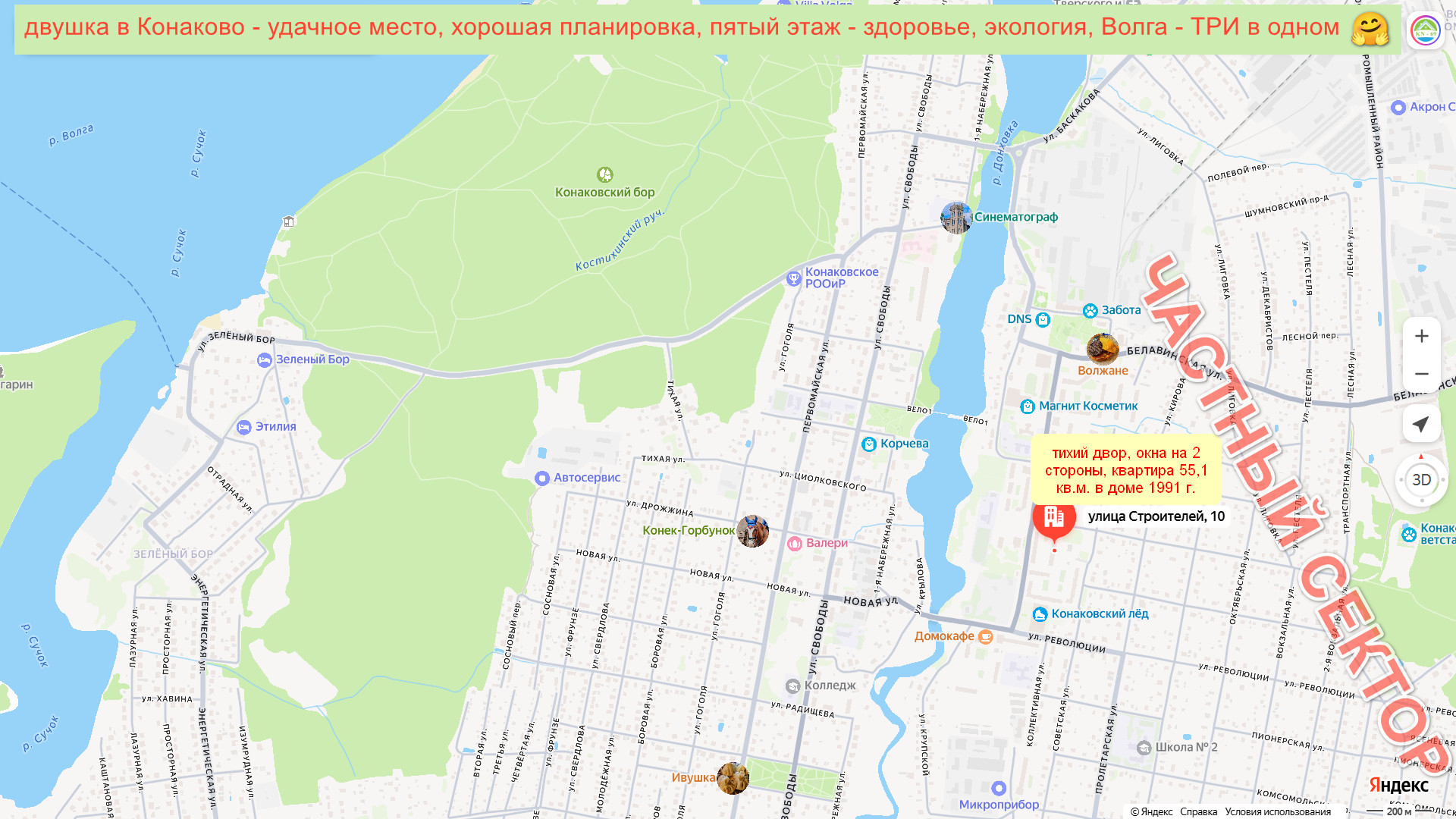 Дом поздней советской постройки - качество, тихий уютный двор с двумя детскими площадками - ни шума ни пыли, рядом Ледовый дворец - отменный досуг и река Донховка - рыбалка возле дома, позади дома начинается частный сектор - прогулки с деревенским колоритом, Волга с песчаными пляжами и сосновым бором по берегу в 3-х км. - красиво и зимой и летом...